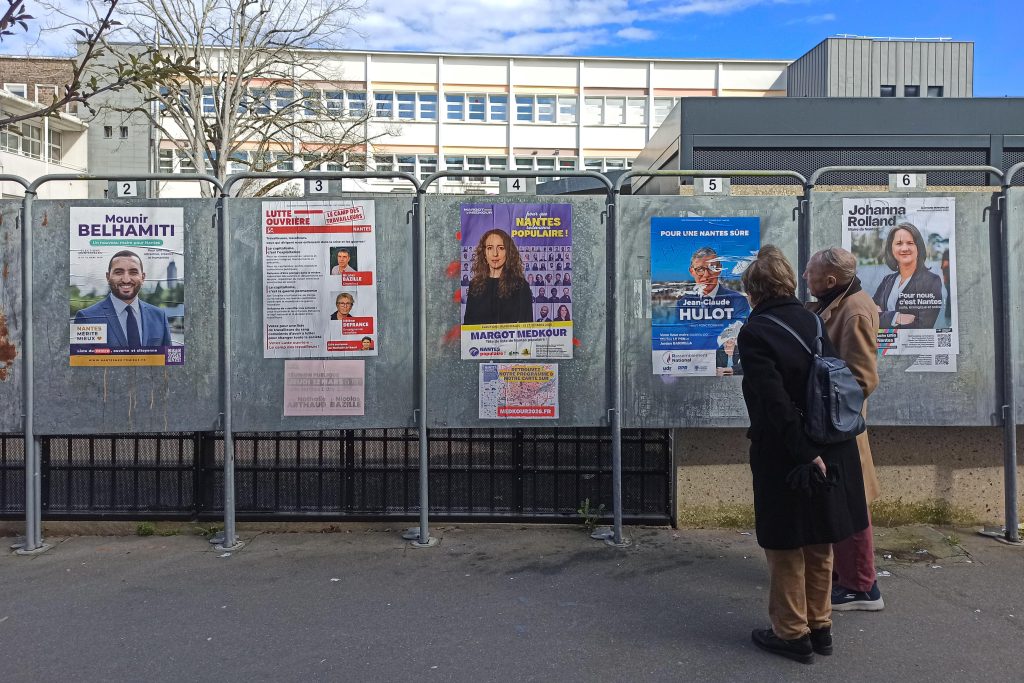 Un peu plus loin, un couple de retraités regarde attentivement chacun des huit panneaux électoraux dressés à l’entrée de cette école élémentaire. « Il a été bien amoché, celui‐là », glisse l’un, en passant les huit candidat(e)s nantais en revue. « C’est pour lequel qu’on vote, déjà ? », interroge l’autre.