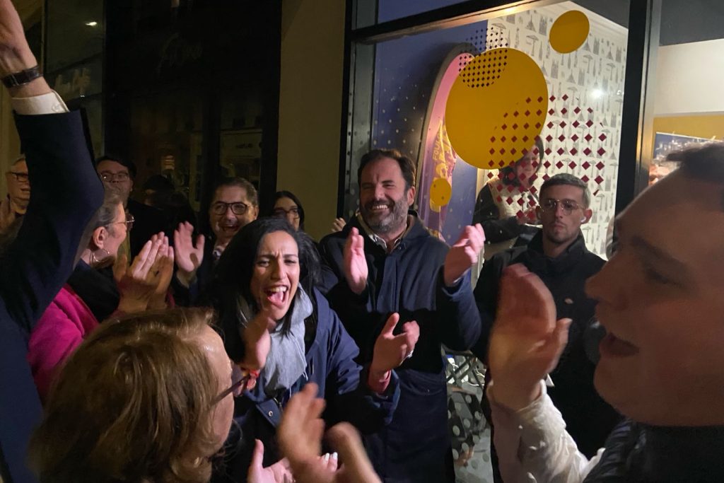 « On va gagner ! » scandent les sympathisants et les colistiers à l’arrivée de Foulques Chombart de Lauwe et de Sarah El Haïry au QG de campagne, rue de la Contrescarpe, à Nantes. Le candidat LR prend la parole : « On est l’alternative heureuse. » Il souligne les victoires de la droite dans les communes voisines : « Il y a un effet domino. On a remporté plusieurs villes, on peut applaudir Orvault. » À ses côtés, Sarah El Haïry (MoDem), candidate à la présidence de la Métropole, conclut : « Le moment est à l’alternance. » Dans la salle, les militants reprennent en chœur : « Et pour Chombart, allez, allez ! »