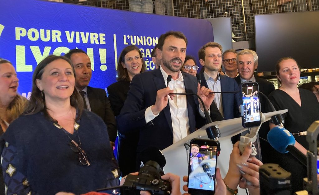 Après une arrivée survoltée au milieu de ses partisans, le maire écologiste réélu à salué celles et ceux qui ont mené sa campagne et remercié les Lyonnais qui ont « choisi de garder Lyon dans une trajectoire républicaine et responsable ». « Nous nous inscrivons dans les pas des humanistes d’hier », a poursuivi l’écologiste en citant Edouard Herriot, son plus illustre prédécesseur.