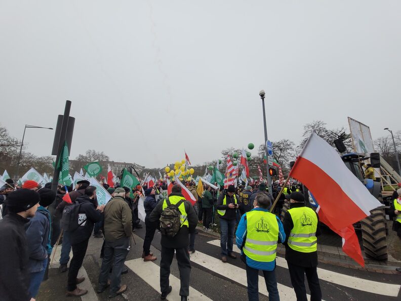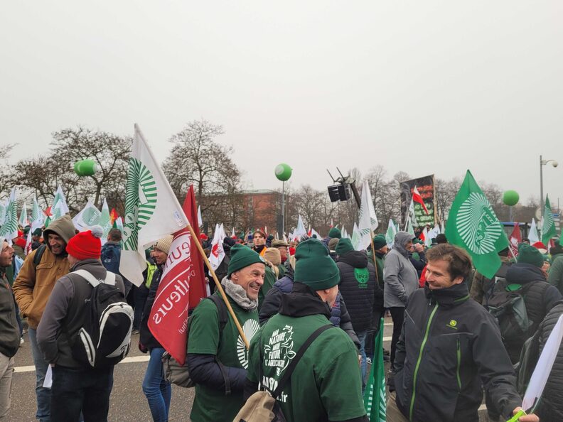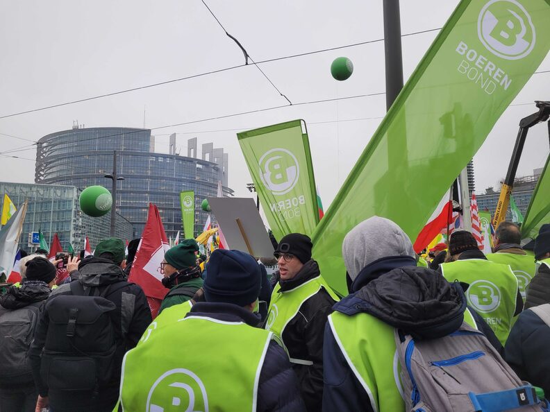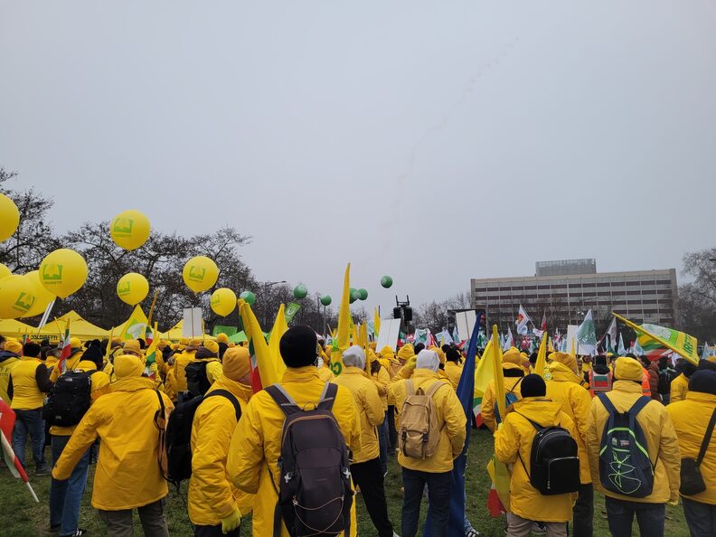 Après une série de discours et de prises de parole, l’ambiance est vite retombée dans les rues autour du Parlement européen. Les agriculteurs de la Coordination rurale, un syndicat tout autant productiviste que la FNSEA et dont les dirigeants ne craignent pas de s’afficher aux côtés du Rassemblement national et d’appeler à « faire la peau aux écolos », ont tenté de rejoindre le cortège principal mais ont été empêchés par un barrage de policiers.