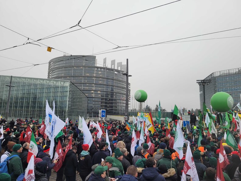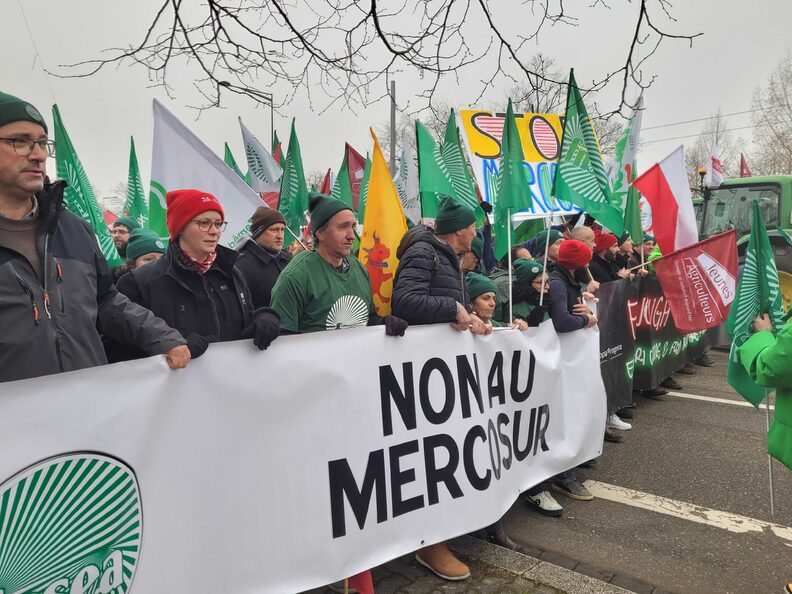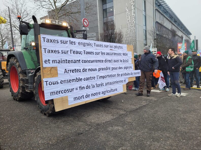 Des milliers d’agriculteurs venus de plusieurs pays d’Europe sont allés protester avec des tracteurs autour du Parlement européen de Strasbourg. Ils veulent faire pression sur les eurodéputé·es pour qu’ils saisissent la Cour de justice de l’Union européenne sur l’accord de libre-échange avec les pays du Mercosur en Amérique latine.