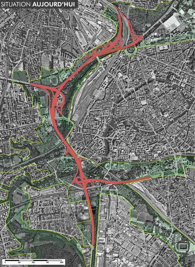 « Les espaces verts qui longent les voies de la M35 sont stériles. L’idée est de reconnecter tous ces espaces pour permettre aux habitants et aux animaux de les utiliser. Selon nos projections, il devrait être possible de récupérer 32 hectares avec cette opération, ça représente autant de surface que le parc de l’Orangerie ou l’emprise de l’Hôpital civil. La moitié de ces nouveaux hectares pourraient être des espaces verts. »